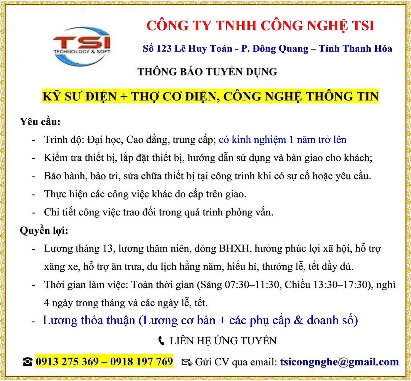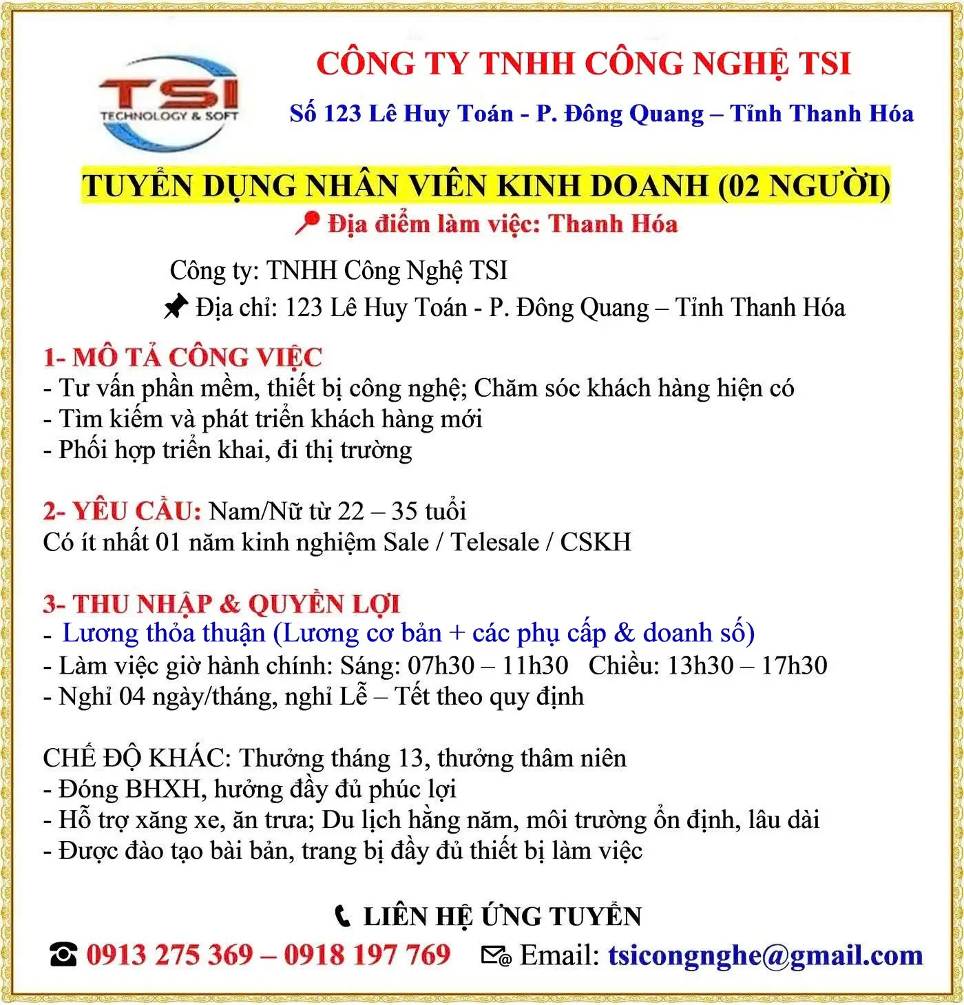 TUYỂN DỤNG NHÂN SỰ BỔ SUNG
