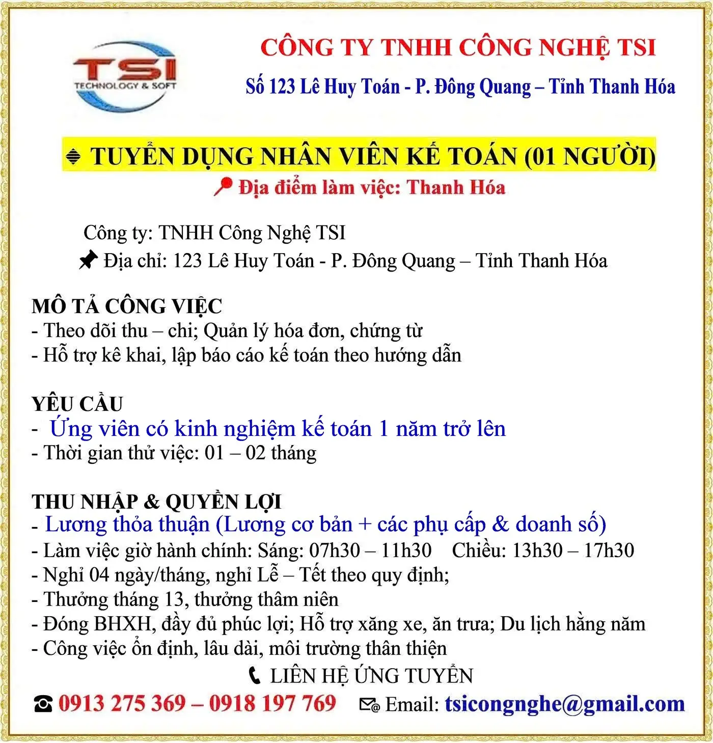 📞 Liên hệ trực tiếp: Ms. Ánh – Phụ trách Nhân sự 📱 0916 753 698
