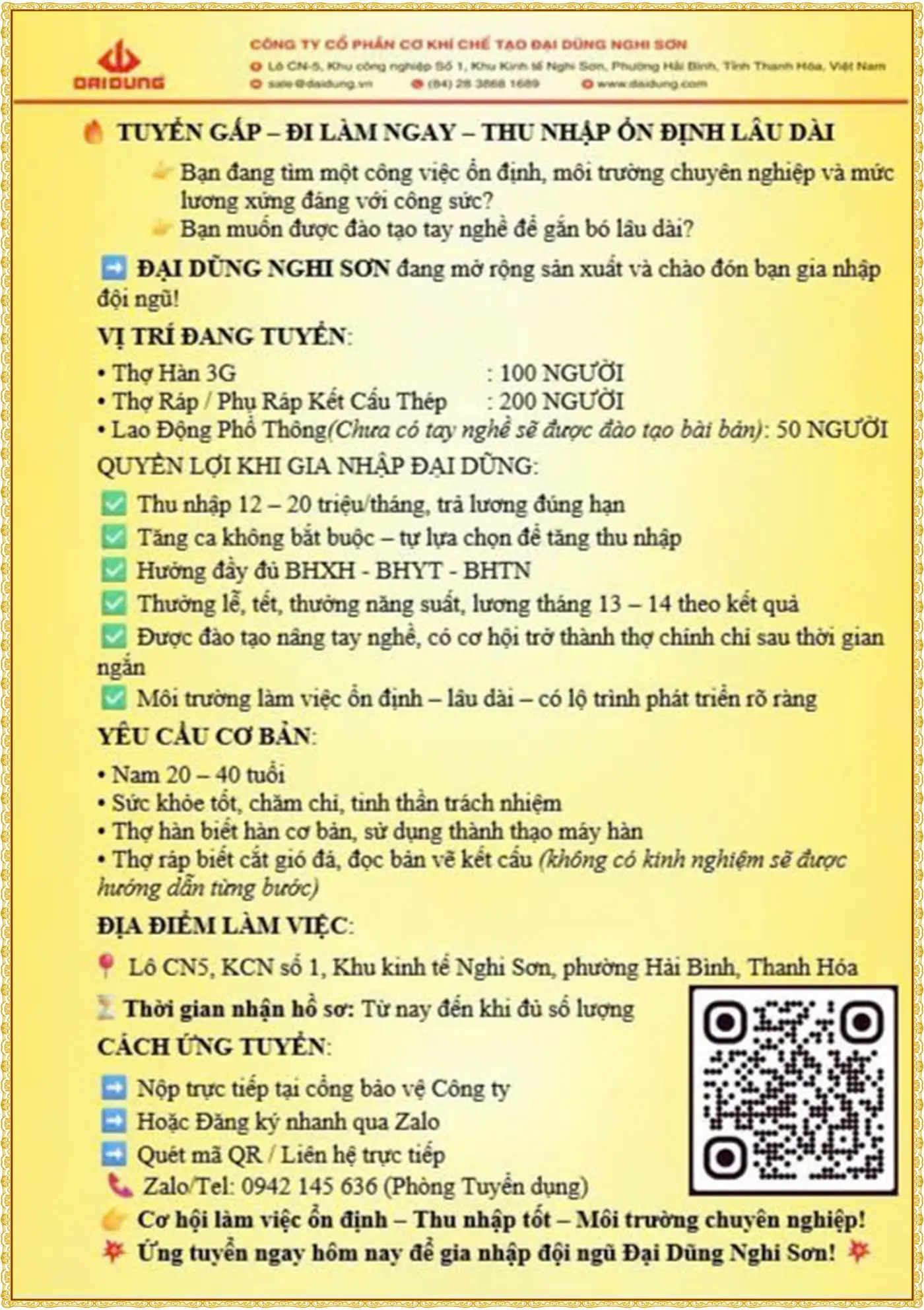 Lô D – KCN Lễ Môn – Quảng Trạch – TP. Thanh Hóa 📞 Liên hệ: Mr. Thuỳ – 0981 080 022