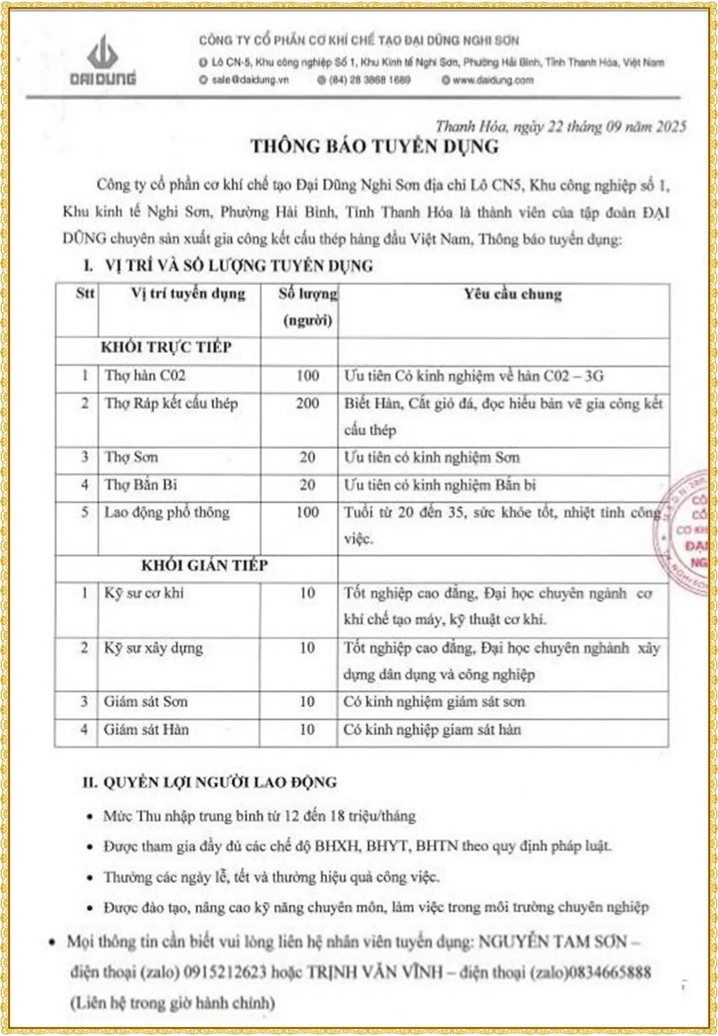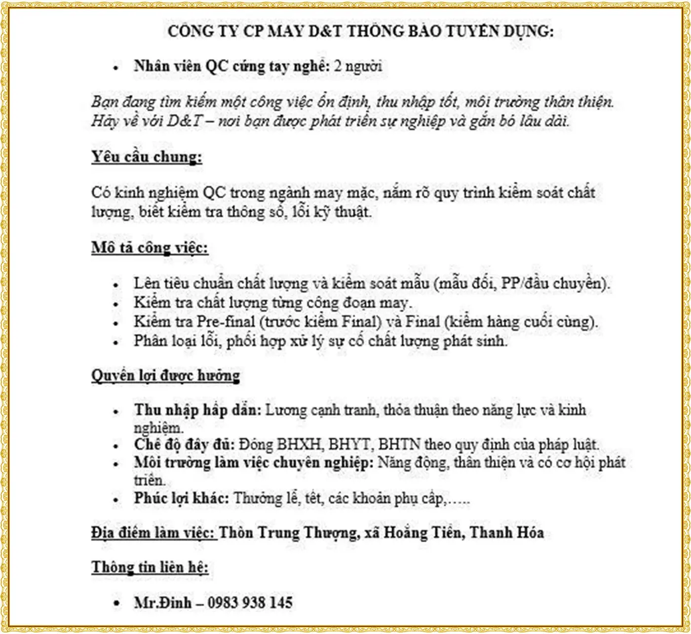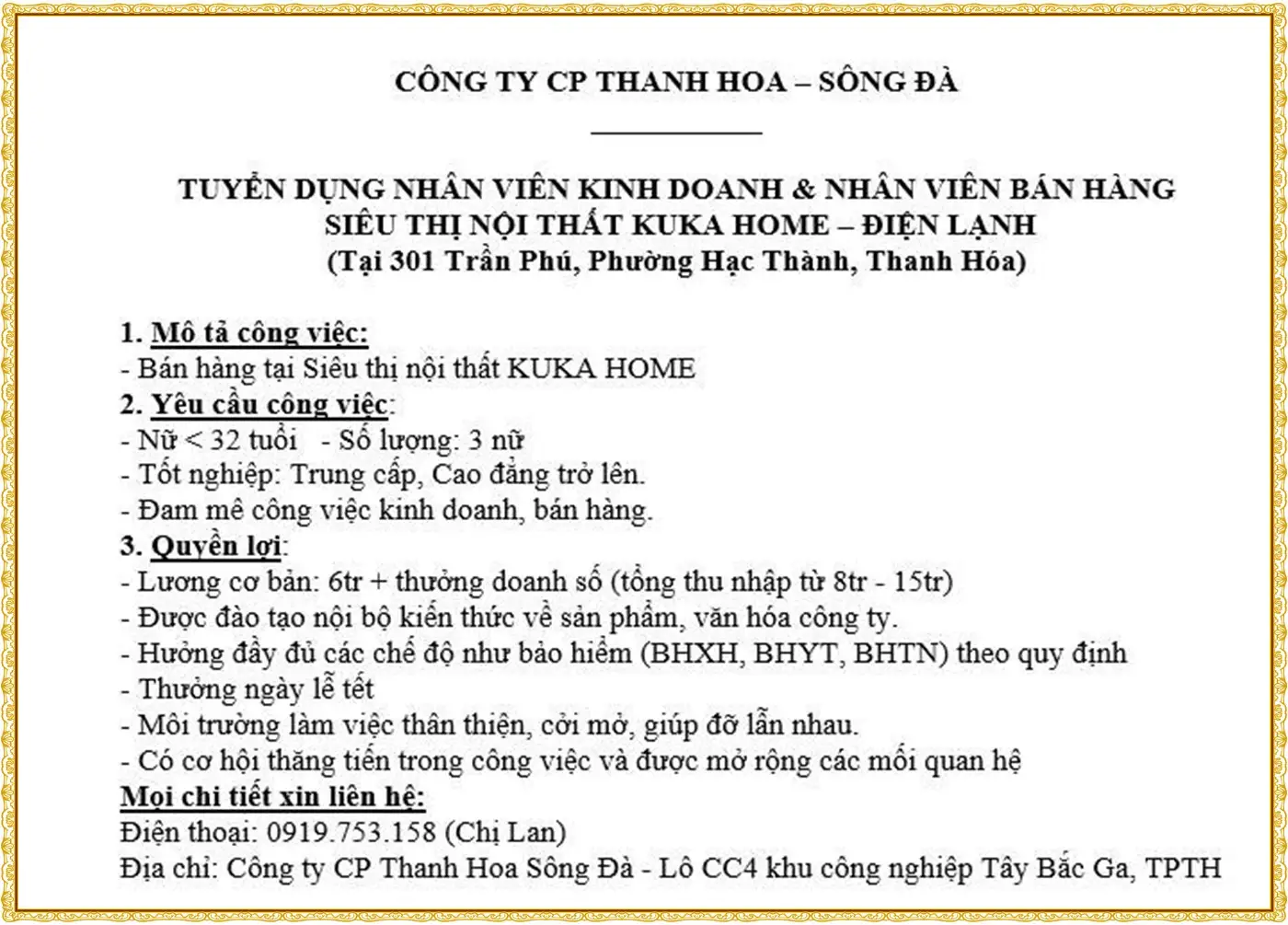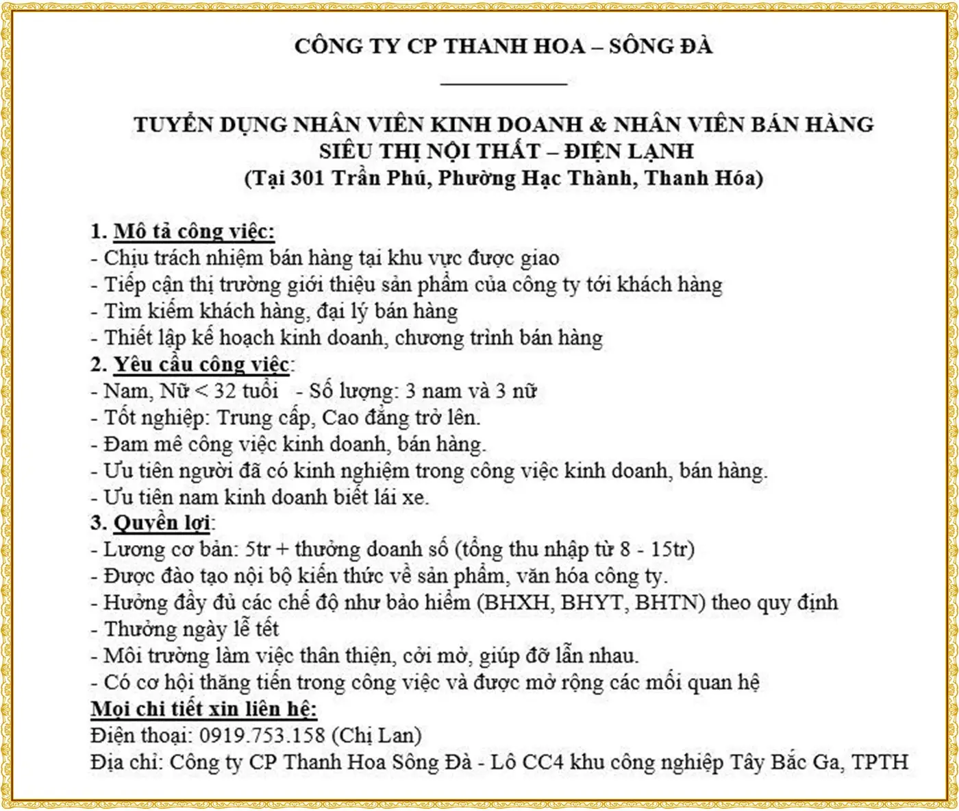 Tin tuyển dụng mới nhất tại Thanh Hóa