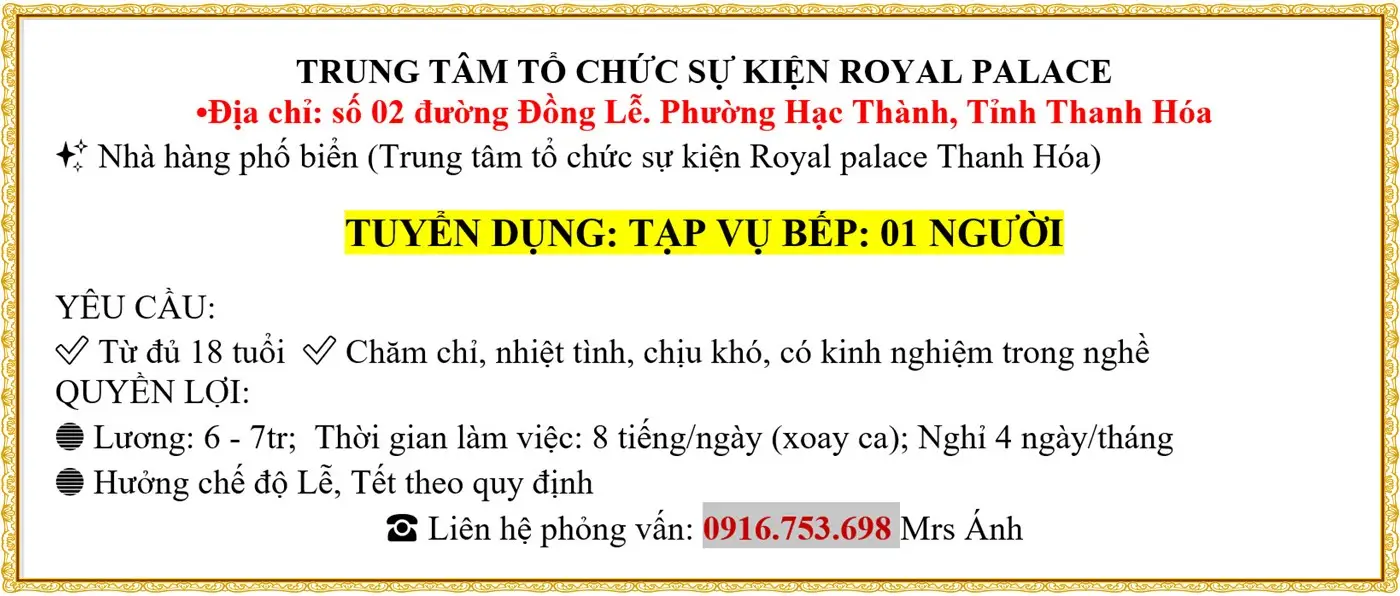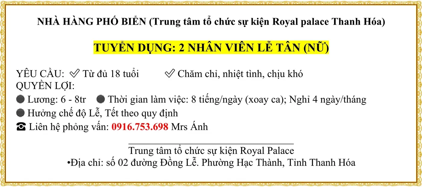 📍 Địa chỉ làm việc: 𝑵𝒉𝒂̀ 𝒉𝒂̀𝒏𝒈 𝑷𝒉𝒐̂́ 𝑩𝒊𝒆̂̉𝒏 - 𝑹𝒐𝒚𝒂𝒍 𝑷𝒂𝒍𝒂𝒄𝒆 • Địa chỉ: 02 Đồng Lễ, P. Hạc Thành, Thanh Hóa