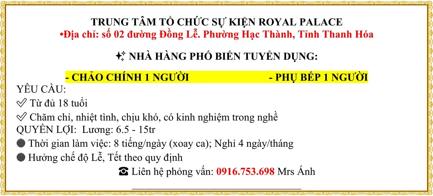 📞 Liên hệ trực tiếp: Ms. Ánh – Phụ trách Nhân sự 📱 0916 753 698